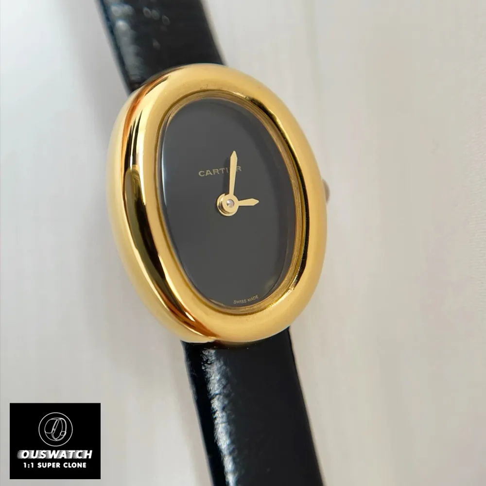 The Cartier Baignoire Mini Super Clone captures the essence of French jewelry design in 24.6mm width. This 2025 updated replica features: