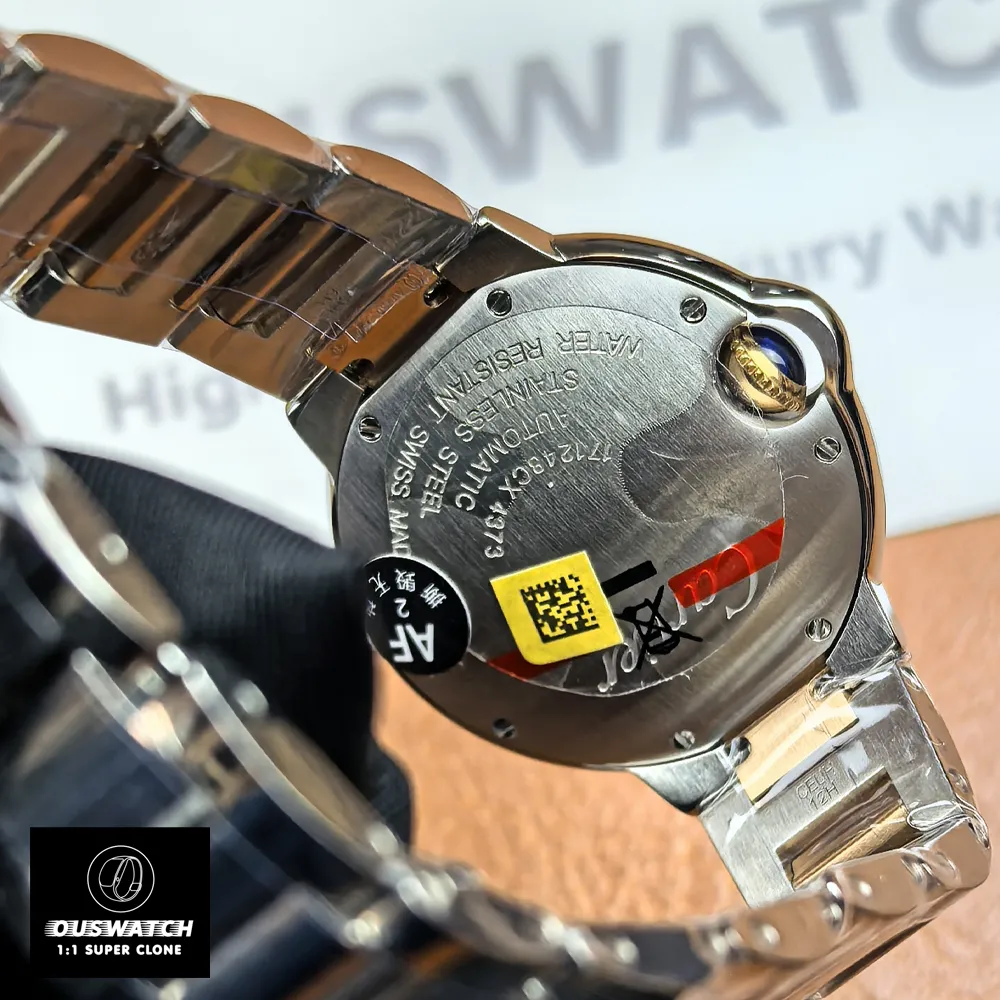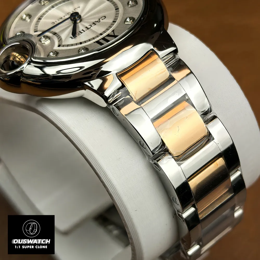 Buying a genuine Cartier Ballon Bleu 33mm can be costly – for example, Jaztime lists its retail price around $10,100 – but our offering delivers the same iconic look at a fraction of that cost. The versatile two-tone design means it pairs well with both gold and silver accessories and works equally for office or evening wear. The diamond-accented dial and polished finishes give it a luxurious presence, embodying Cartier quality without the original’s premium price tag. For related models, browse our Cartier Ballon Bleu two-tone collection or explore the full Cartier watch collection on OUSWatch for more luxury options.