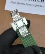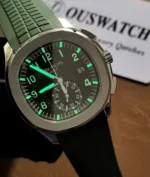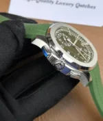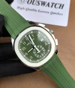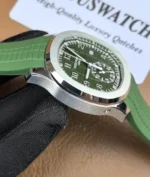 The Patek Philippe Aquanaut 5968G-010 Chronograph is a premium green Aquanaut Chronograph Super Clone watch.This high-end replica is produced by the top-tier 3K Factory, known for its strict component sourcing and movement accuracy. The watch features a 42.2mm case crafted from 316L stainless steel with 18K white gold PVD coating, paired with the iconic green Aquanaut rubber strap. At its heart is a Swiss-clone CH 28-520 C automatic chronograph movement, engineered to replicate the original architecture, functions, and operating logic—supporting time, date, and fully functional chronograph complications.