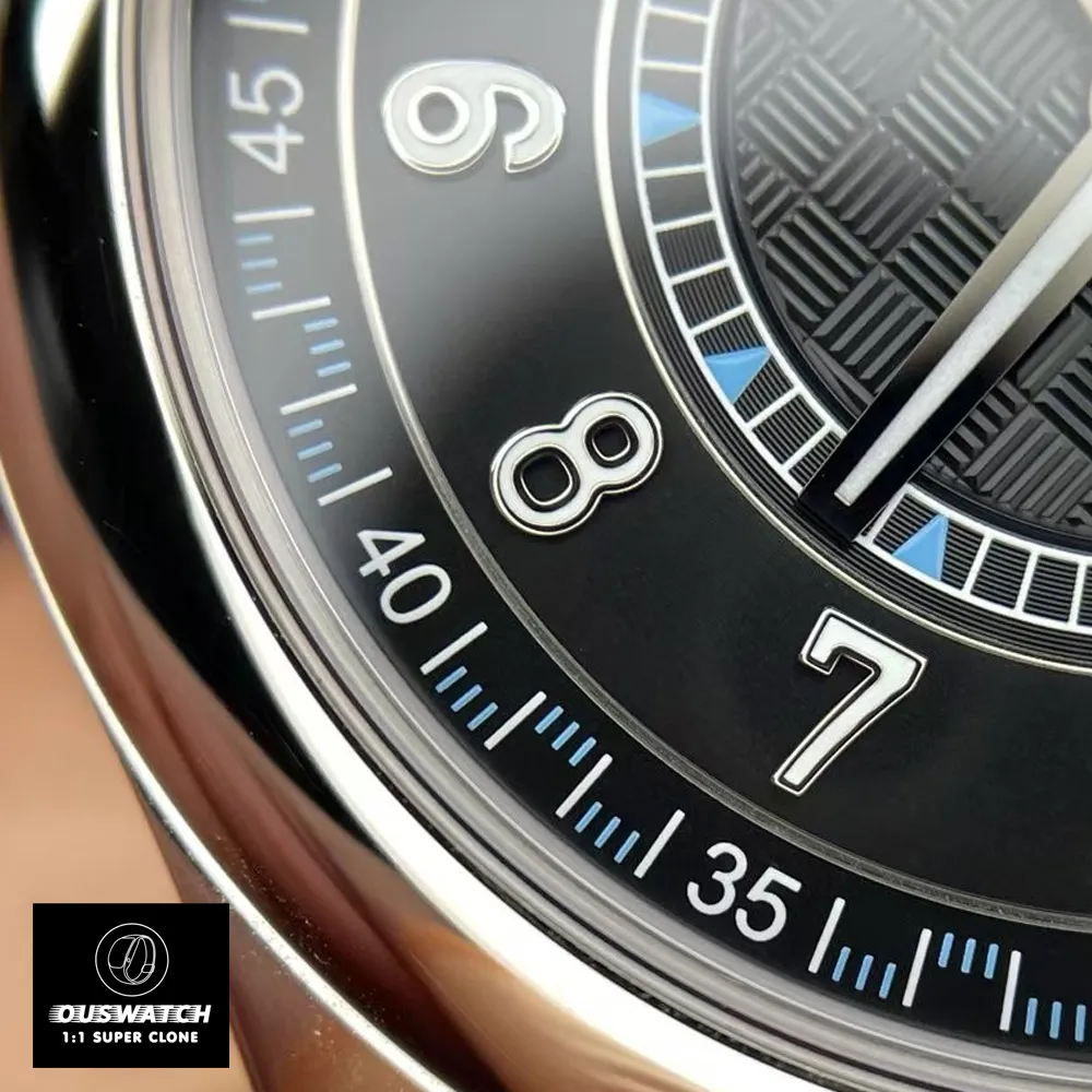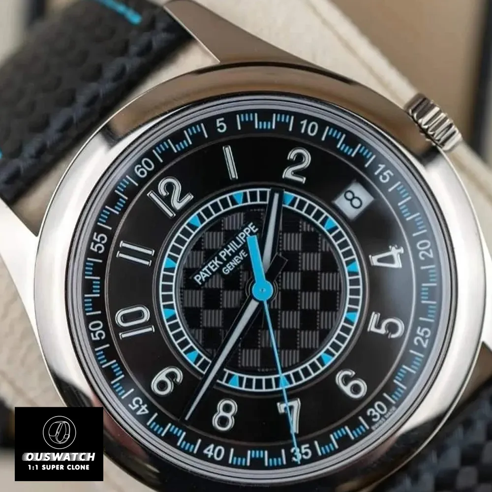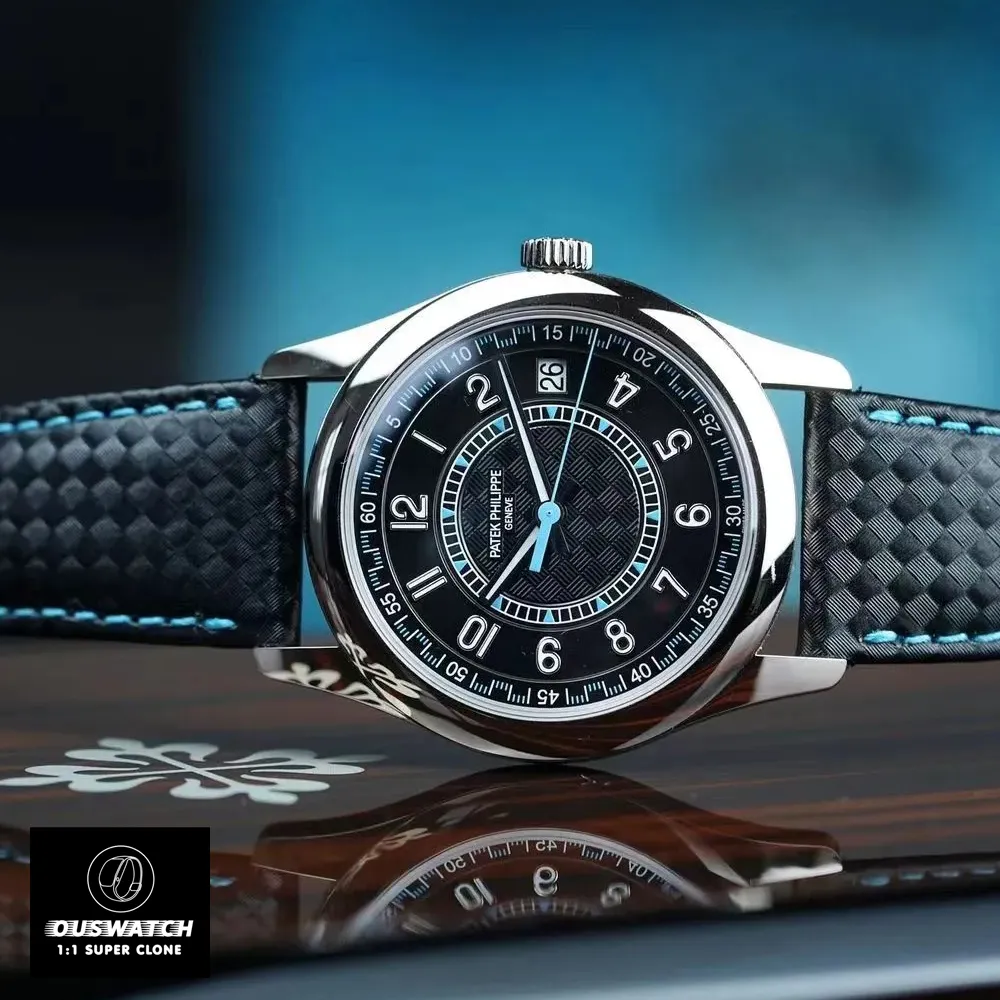 The Patek Philippe Calatrava 6119G-001 Super Clone Watch captures the spirit of the original Clous de Paris model with an enlarged 39 mm white-gold case and intricate Paris-hobnail bezel. The charcoal-grey dial, vertical satin finish, and faceted hour markers create a contemporary yet timeless aesthetic. Beneath the sapphire caseback lies a faithful clone of the 30-255 PS manual-wind movement, delivering 65 hours of power reserve.