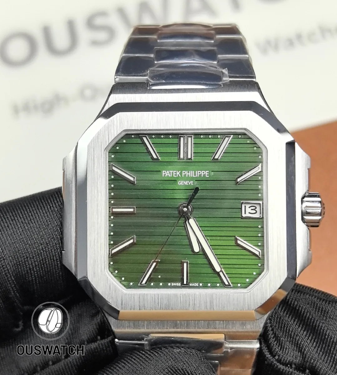 Experience the Cubitus 5821/1A-001 and other Swiss luxury watches at OUSWatch. Our Patek Philippe Cubitus collection includes this green-dial model and similar styles, each crafted to meet our strict quality standards. Whether you’re seeking the best Patek replica or an affordable luxury timepiece, you’ll find reliable performance, elegant design, and global shipping at OUSWatch.
