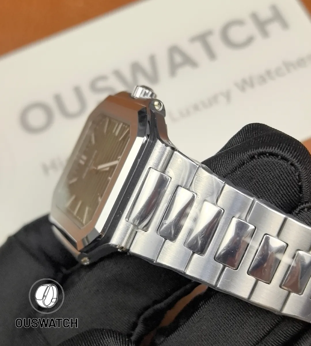 The Cubitus 5821/1A draws heavily on Patek Philippe’s legacy of elegant sports watches. Its square-shaped case with softly rounded edges nods to the Nautilus heritage – in fact, it shares the Nautilus’s alternating polish/satin finish pattern. Yet the Cubitus makes its own statement: the larger case (45 mm diameter) and bold dial color create a modern, masculine flair. Every detail – from the fine sunburst on the olive dial to the high-quality steel bracelet – reflects careful Swiss craftsmanship. Patek’s description calls it a reinvention of “casual chic” style in steel, and this Cubitus clone captures that spirit by offering premium design cues in a more affordable package.