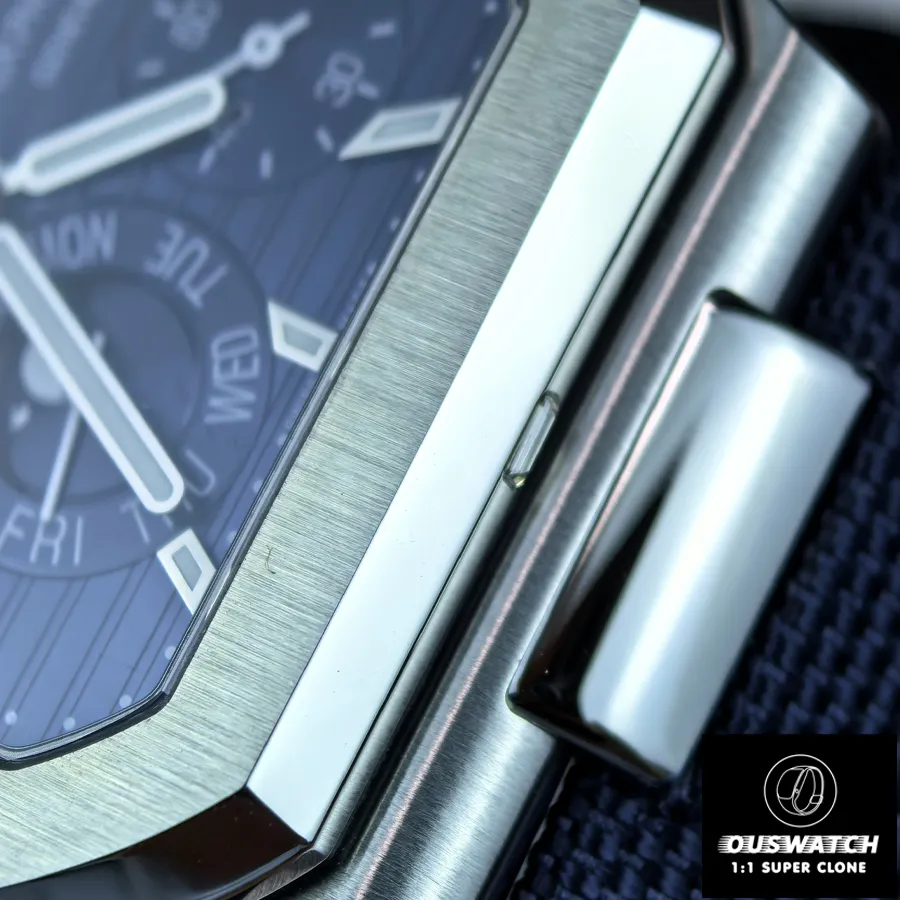 In contrast, the 5822P Super Clone caters to a different kind of demand — those who desire the look and functionality of the Patek Philippe Cubitus but prefer not to take on the full commitment of owning the genuine piece. Priced at only a fraction of the original, it features a square platinum case, a blue dial, and fully functional moon phase and date displays. In this sense, it truly captures the design essence of Patek Philippe. You can wear it and discuss the bold Cubitus design with confidence — unless one is a highly trained expert, it’s difficult to tell that this is a replica watch.