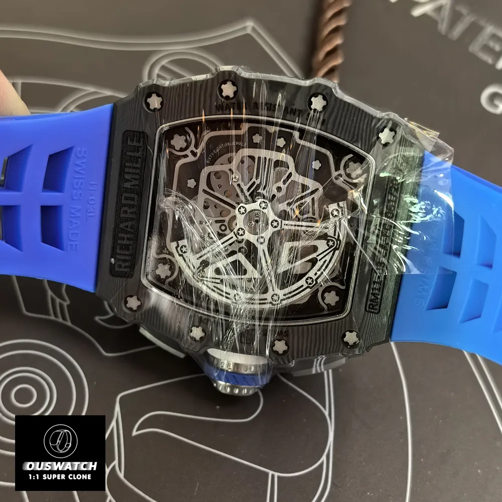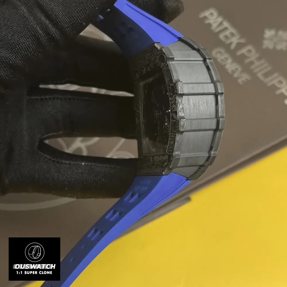Co-designed with Premier League-winning manager Roberto Mancini, this RM 011 Super Clone merges football’s tactical precision with haute horology. The 50mm x 42.7mm case features 600-layer Carbon TPT® alternating blue/anthracite fibers – compressed at 8-bar pressure for 35% higher torsional strength than standard chronographs.