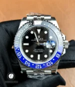 The Rolex GMT-Master II “Batgirl” (Ref. 126710BLNR-0002) combines the iconic Oystersteel case with a bi-colour blue/black Cerachrom bezel and a Jubilee bracelet, capturing both luxury and functionality. As enthusiasts search for an affordable alternative, our Rolex Super Clone collection offers high-fidelity recreations of this design. This GMT-Master II faithfully mirrors the authentic 40 mm Oystersteel case and black dial, while providing the full GMT function found in the genuine model. Its two-tone Cerachrom bezel and Cyclops date magnifier ensure readability across time zones, addressing the needs of travelers and Rolex aficionados alike. For more GMT-Master II variants, visit our GMT Master II Super Clone page to explore related models.