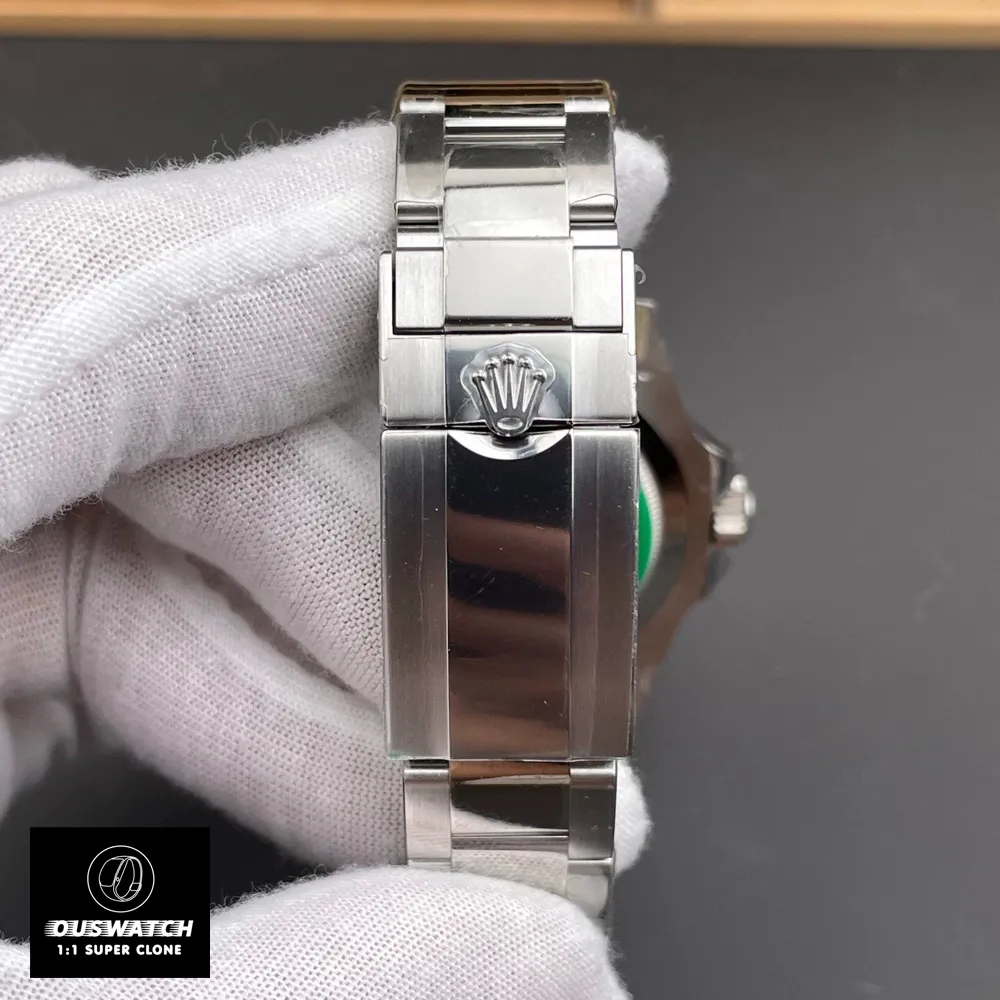 • Movement: Automatic Rolex Calibre 3285 clone movement with GMT function. It includes Rolex’s patented Chronergy escapement for high energy efficiency and a Parachrom hairspring for stability. Thanks to its design, the movement provides about a 70-hour power reserve. Paraflex shock absorbers further protect the movement against daily shocks and vibrations.