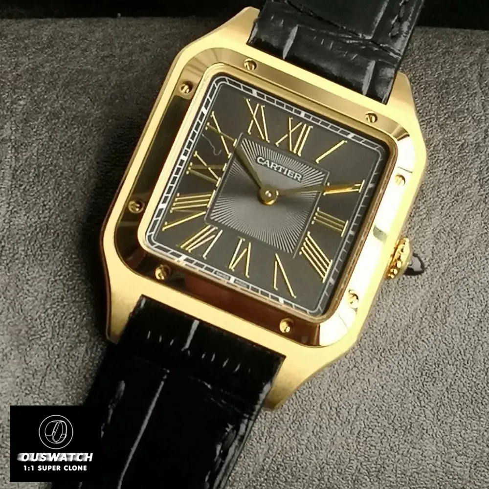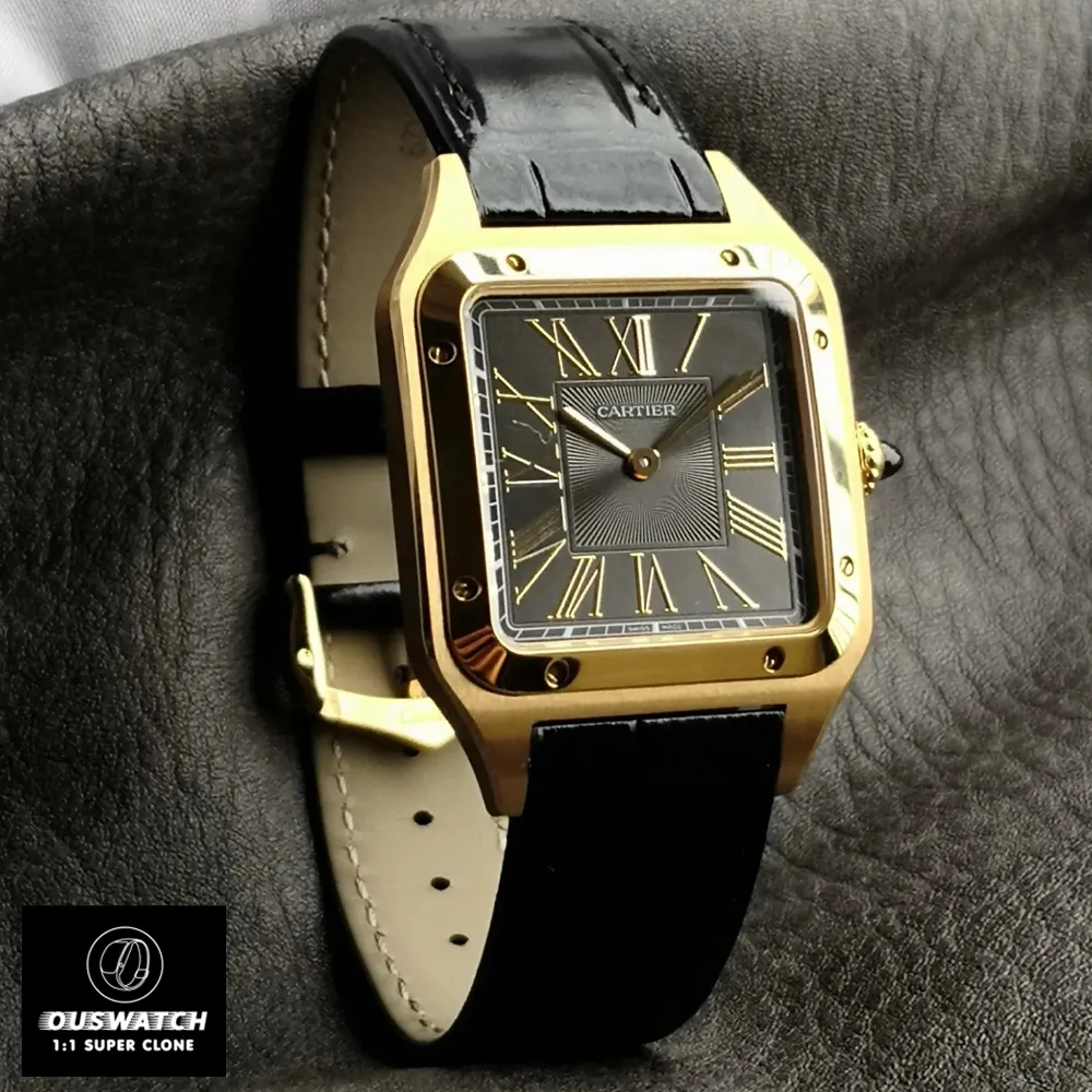 Born from the 1904 friendship between Louis Cartier and aviation pioneer Alberto Santos-Dumont, this Santos Dumont Super Clone honors the world’s first pilot’s watch. Its square case with exposed screws mirrors rivets on early aircraft fuselages, while the 43.5mm size replicates the original’s cockpit legibility requirements.