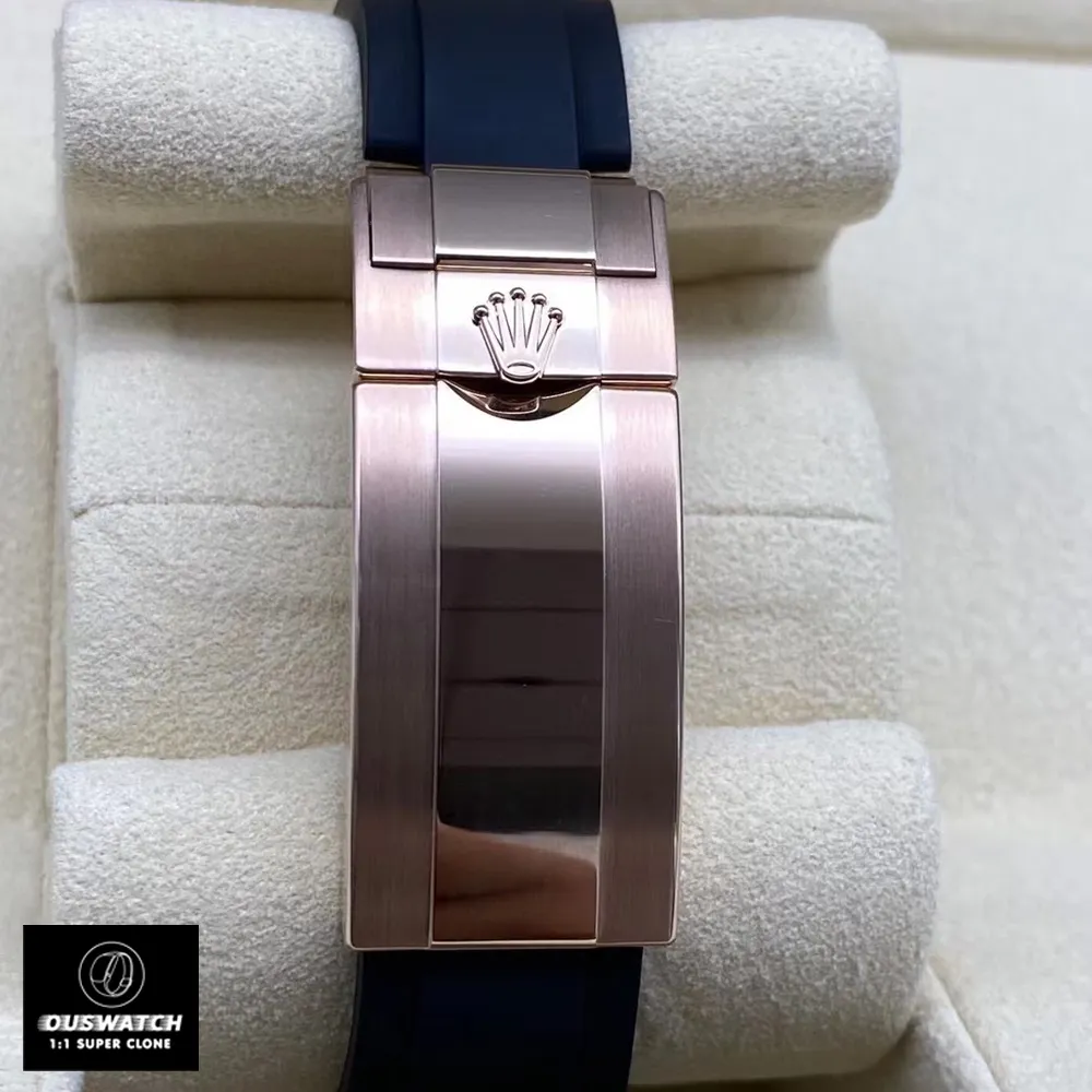 Fully unfolded rose gold clasp of the Super Clone Rolex Yacht-Master 40 watch